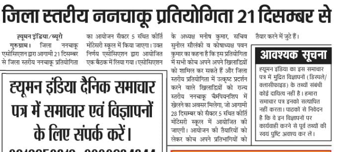 जिला स्तरीय ननचाकू प्रतियोगिता 21 दिसम्बर से